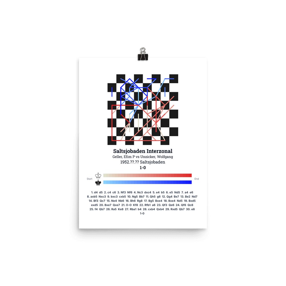 Museum-quality poster on thick, durable matte paper. A sharp, clean look for any chess visualisation.