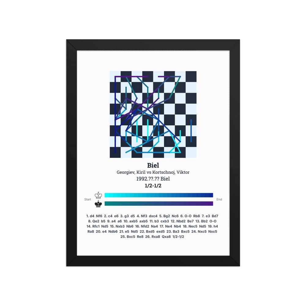 Museum-quality poster on thick, durable matte paper. A sharp, clean look for any chess visualisation.