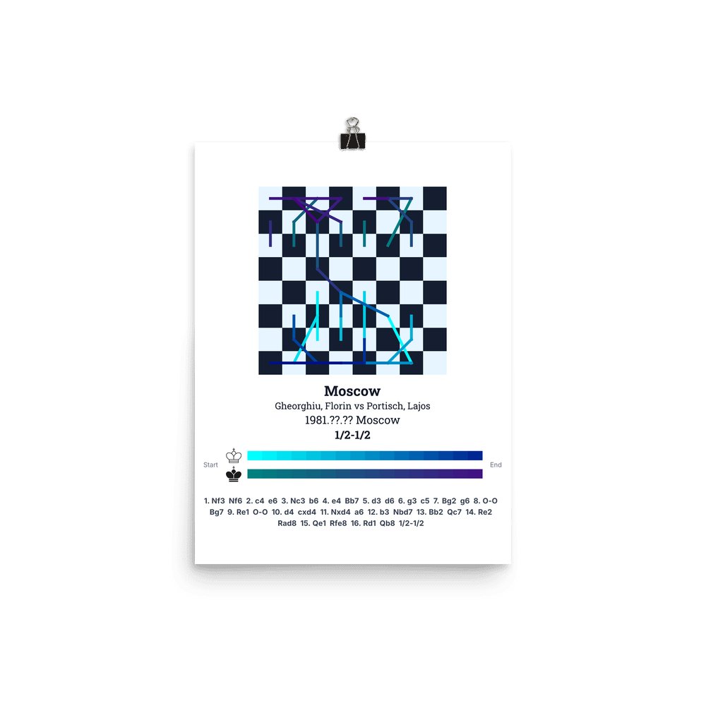 Museum-quality poster on thick, durable matte paper. A sharp, clean look for any chess visualisation.