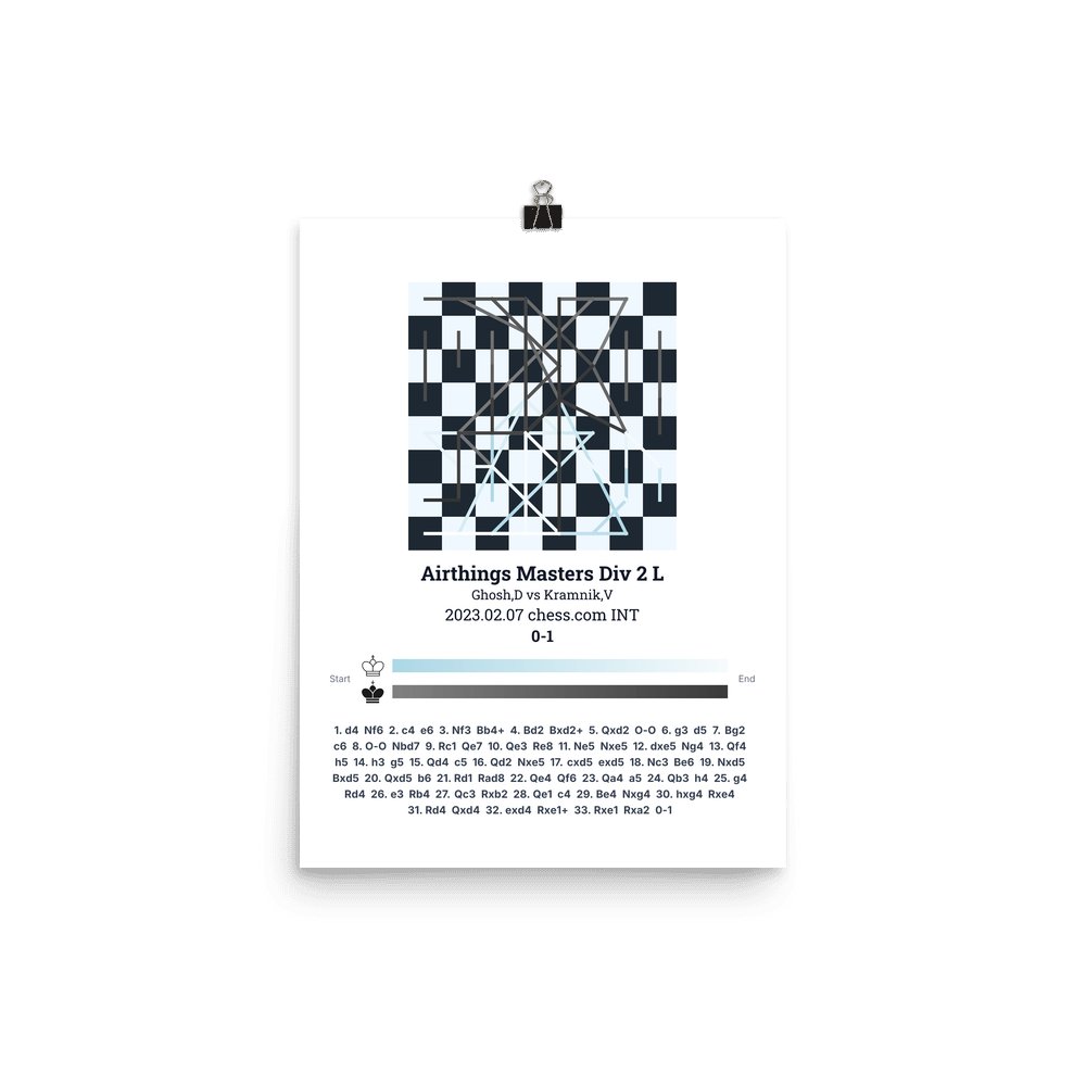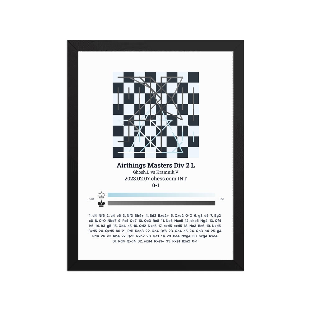 Museum-quality poster on thick, durable matte paper. A sharp, clean look for any chess visualisation.