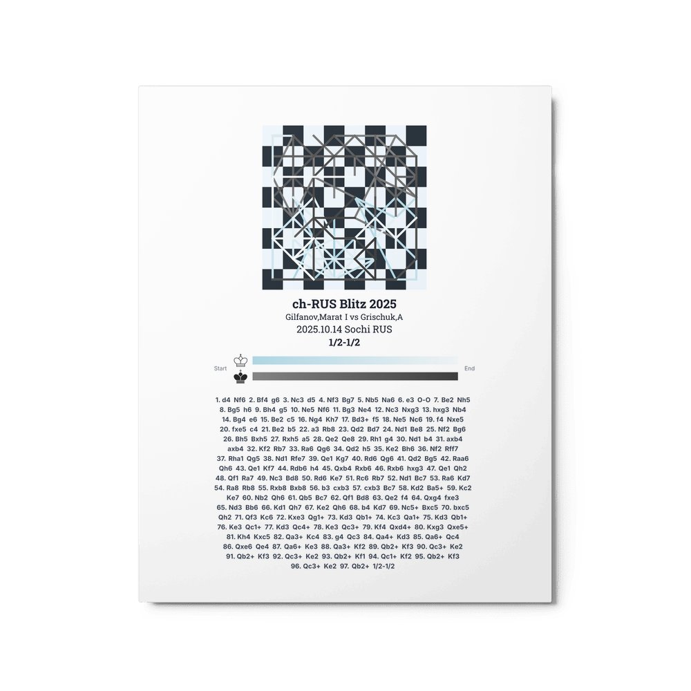 Museum-quality poster on thick, durable matte paper. A sharp, clean look for any chess visualisation.