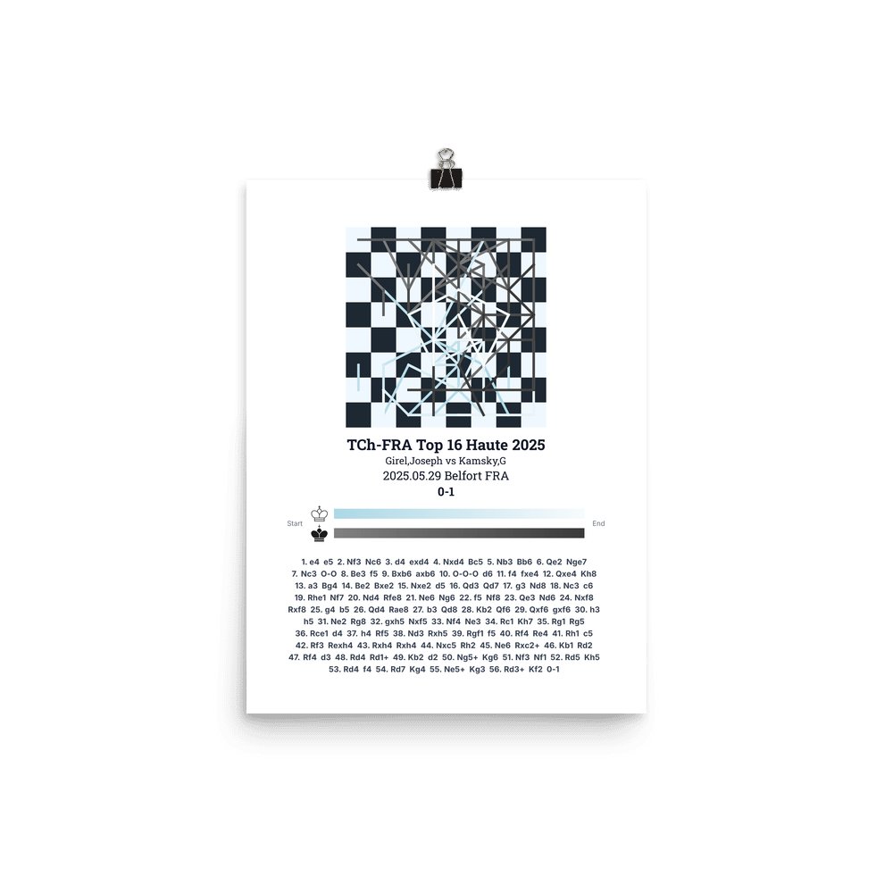 Museum-quality poster on thick, durable matte paper. A sharp, clean look for any chess visualisation.