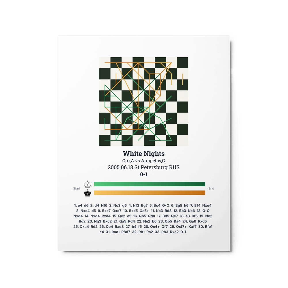 Museum-quality poster on thick, durable matte paper. A sharp, clean look for any chess visualisation.