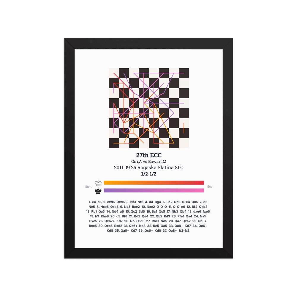Museum-quality poster on thick, durable matte paper. A sharp, clean look for any chess visualisation.