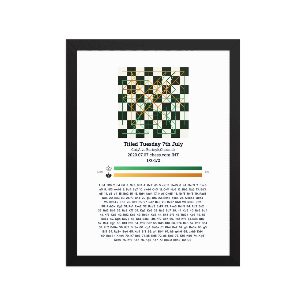 Museum-quality poster on thick, durable matte paper. A sharp, clean look for any chess visualisation.
