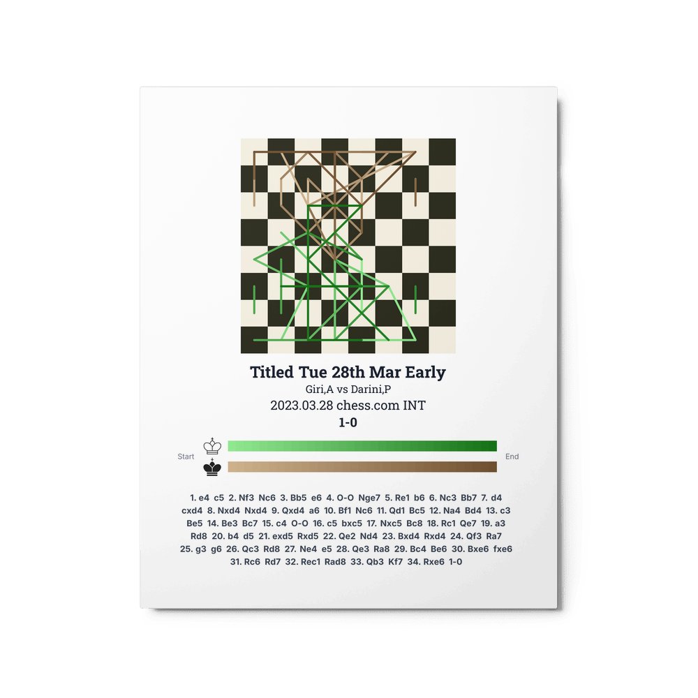 Museum-quality poster on thick, durable matte paper. A sharp, clean look for any chess visualisation.
