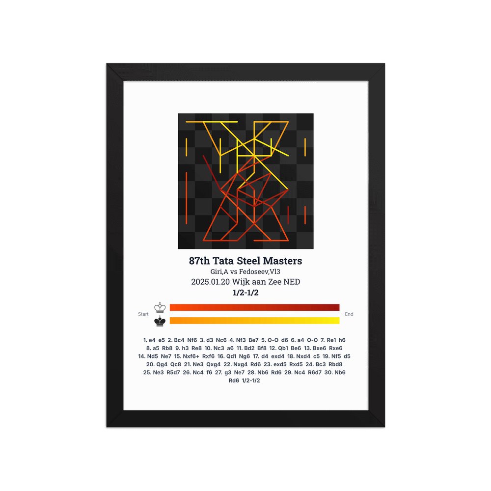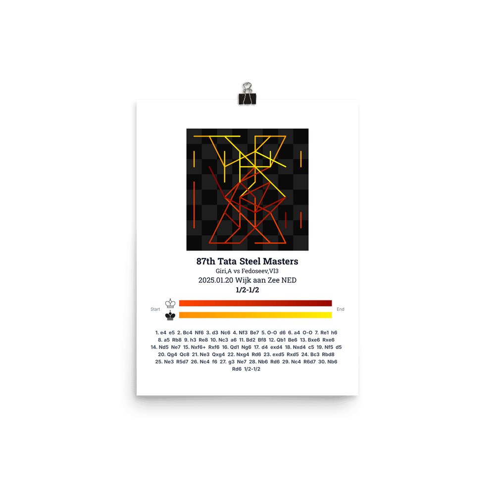 Museum-quality poster on thick, durable matte paper. A sharp, clean look for any chess visualisation.