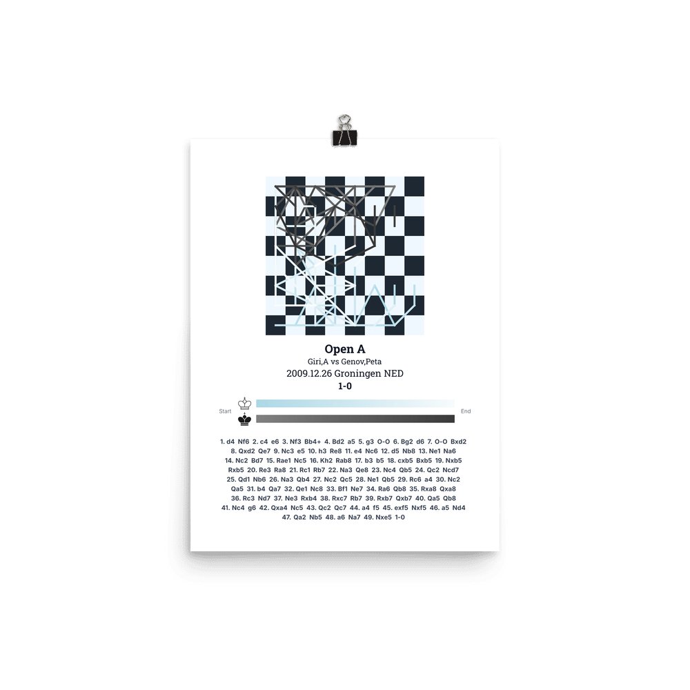 Museum-quality poster on thick, durable matte paper. A sharp, clean look for any chess visualisation.