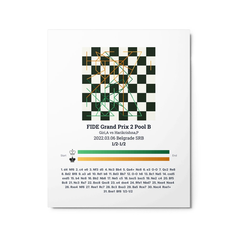 Museum-quality poster on thick, durable matte paper. A sharp, clean look for any chess visualisation.