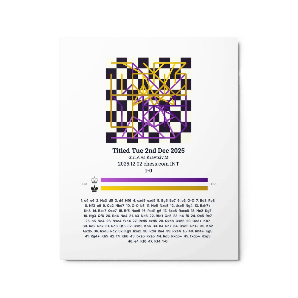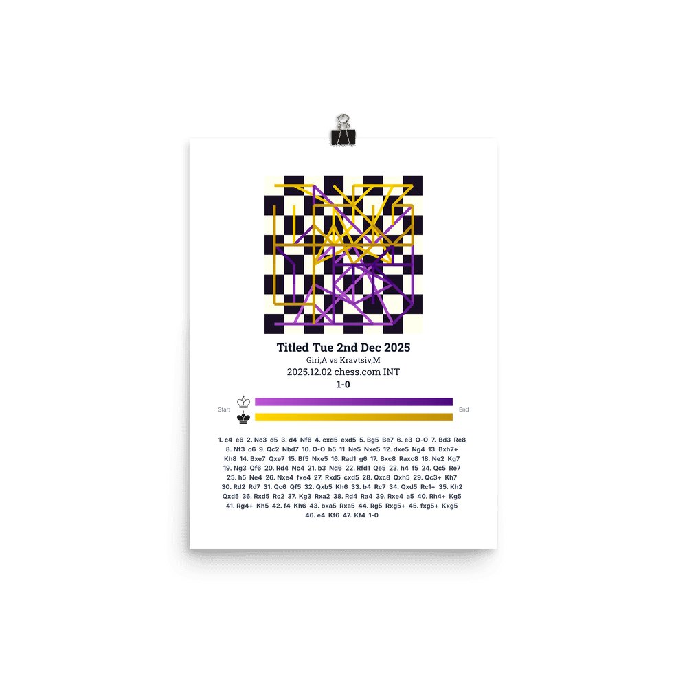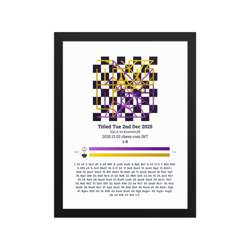 Museum-quality poster on thick, durable matte paper. A sharp, clean look for any chess visualisation.