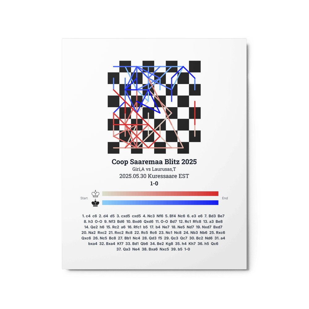 Museum-quality poster on thick, durable matte paper. A sharp, clean look for any chess visualisation.
