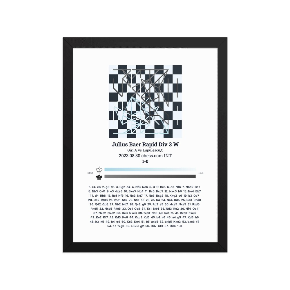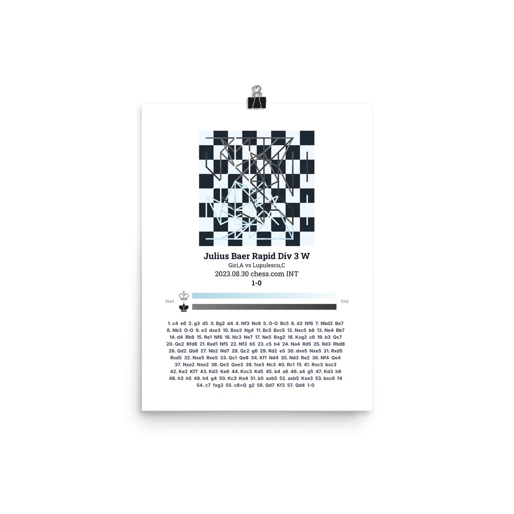 Museum-quality poster on thick, durable matte paper. A sharp, clean look for any chess visualisation.