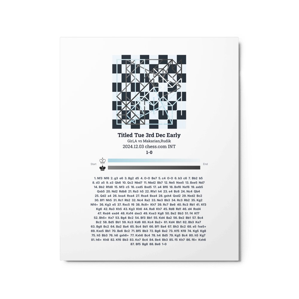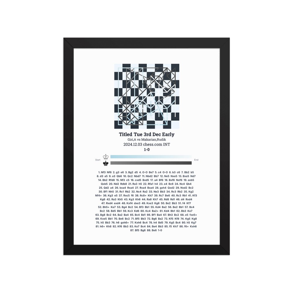 Museum-quality poster on thick, durable matte paper. A sharp, clean look for any chess visualisation.