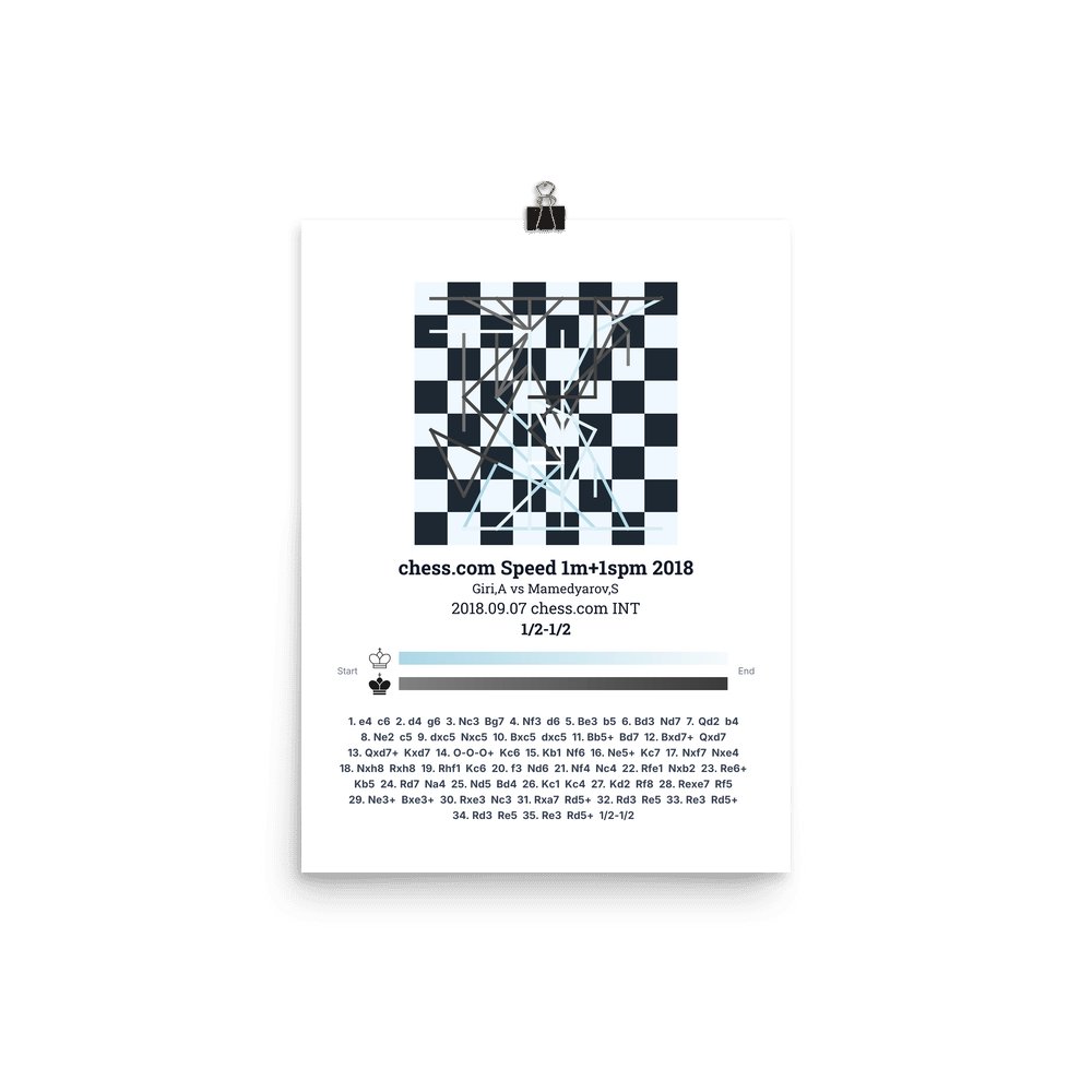 Museum-quality poster on thick, durable matte paper. A sharp, clean look for any chess visualisation.