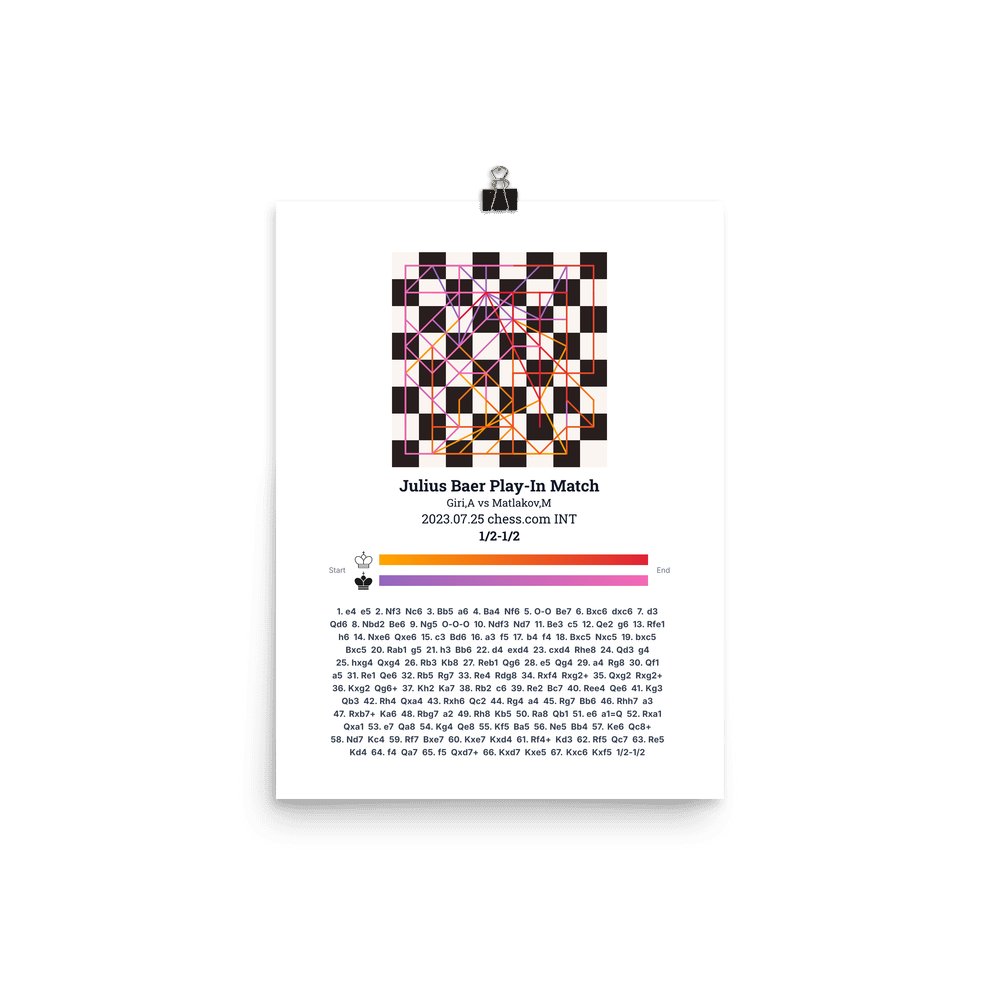 Museum-quality poster on thick, durable matte paper. A sharp, clean look for any chess visualisation.