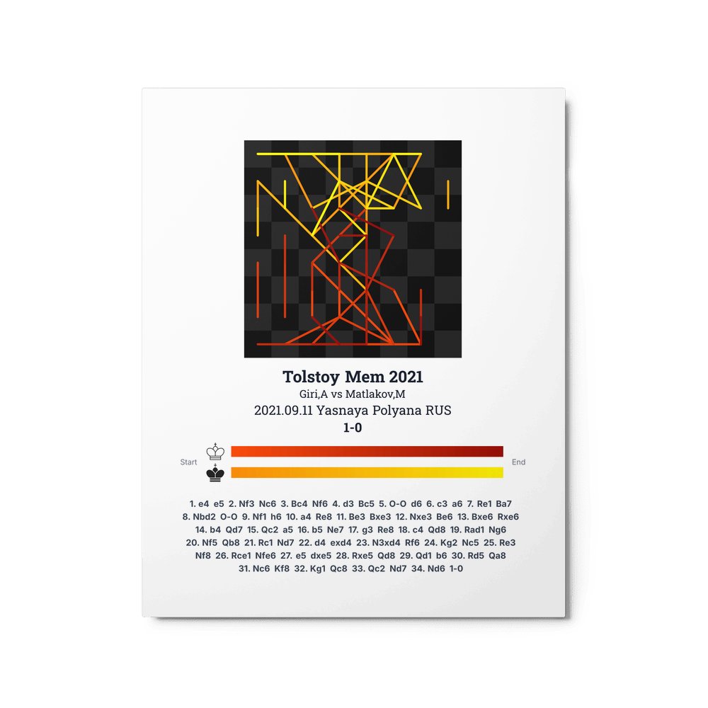 Museum-quality poster on thick, durable matte paper. A sharp, clean look for any chess visualisation.