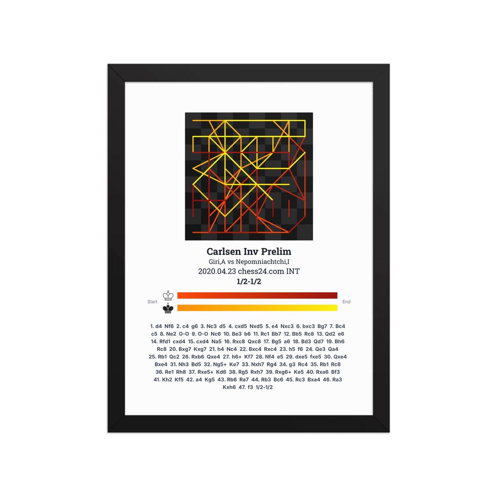 Museum-quality poster on thick, durable matte paper. A sharp, clean look for any chess visualisation.