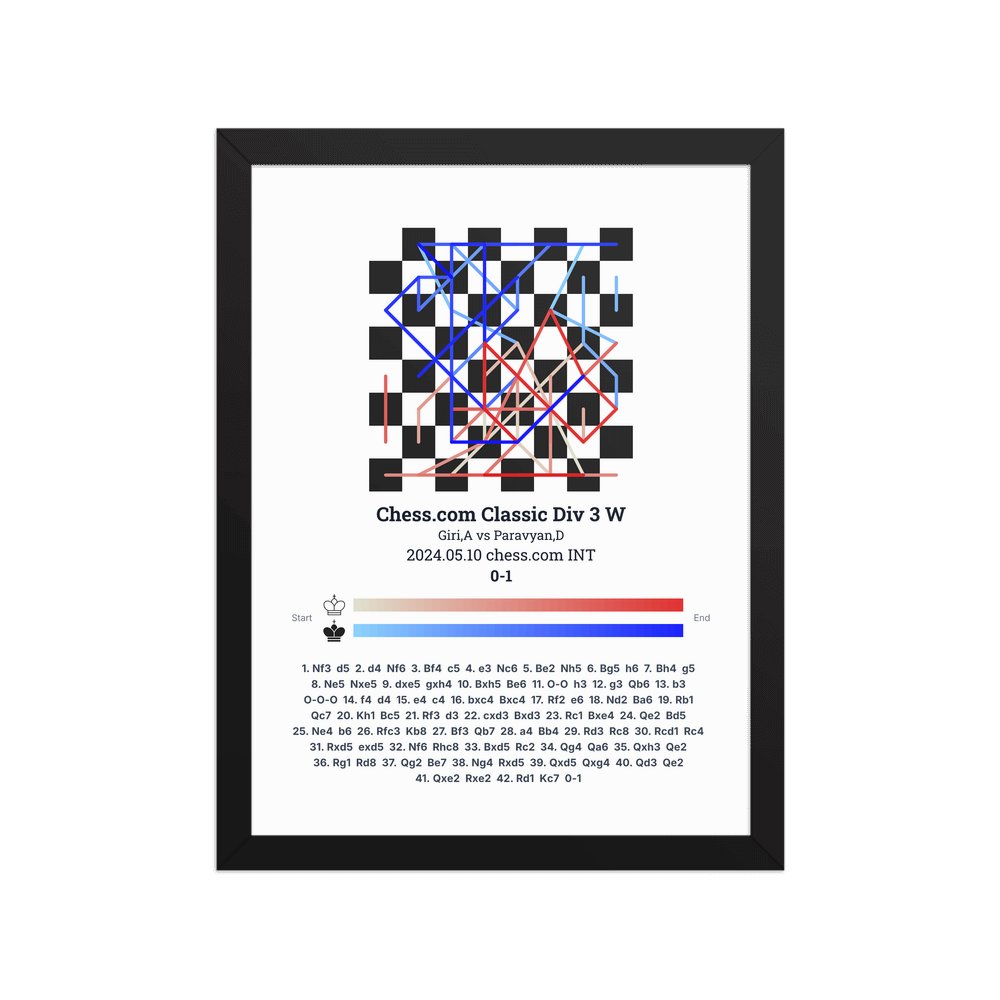 Museum-quality poster on thick, durable matte paper. A sharp, clean look for any chess visualisation.