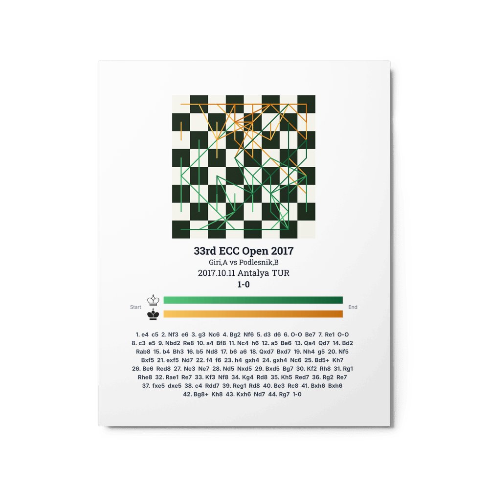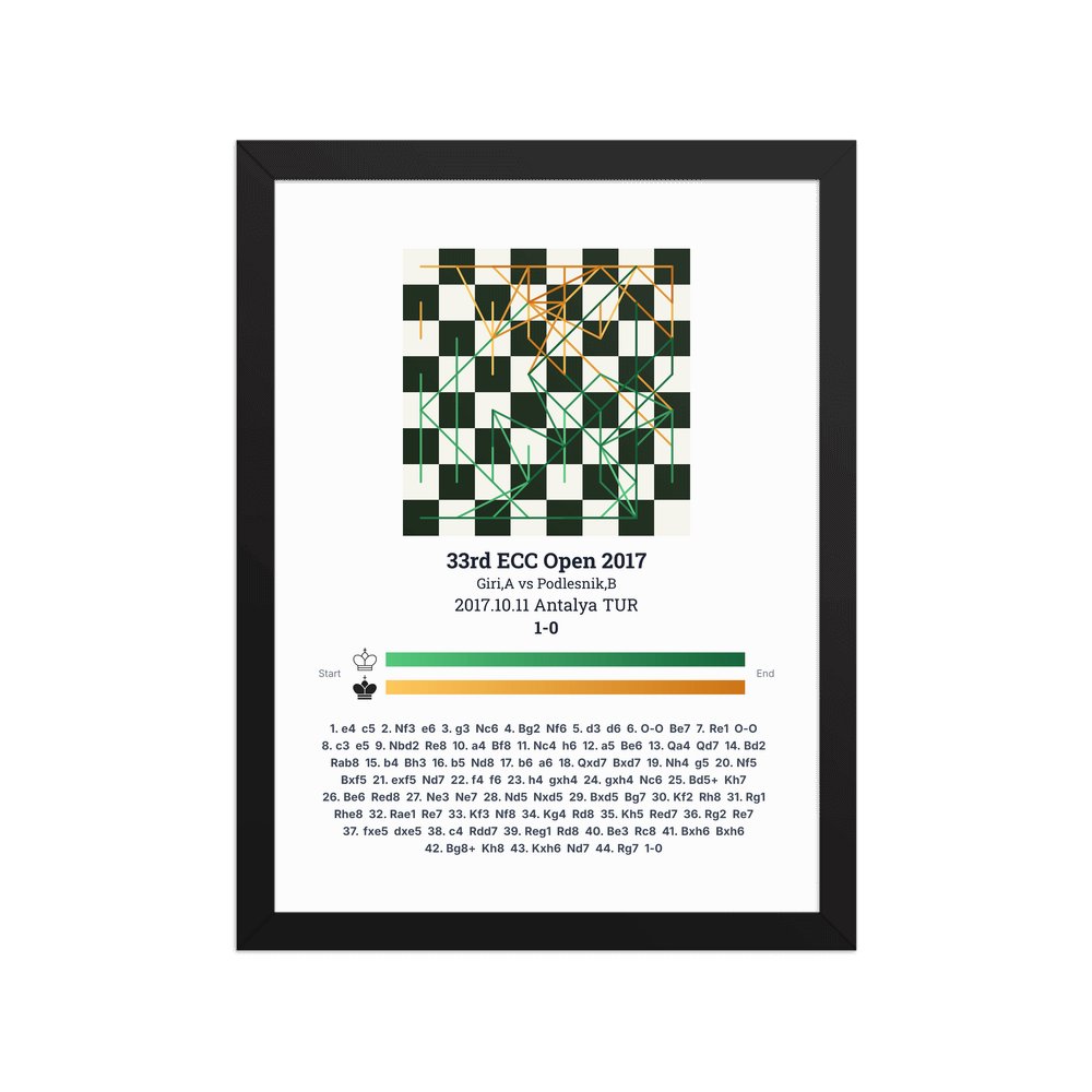 Museum-quality poster on thick, durable matte paper. A sharp, clean look for any chess visualisation.