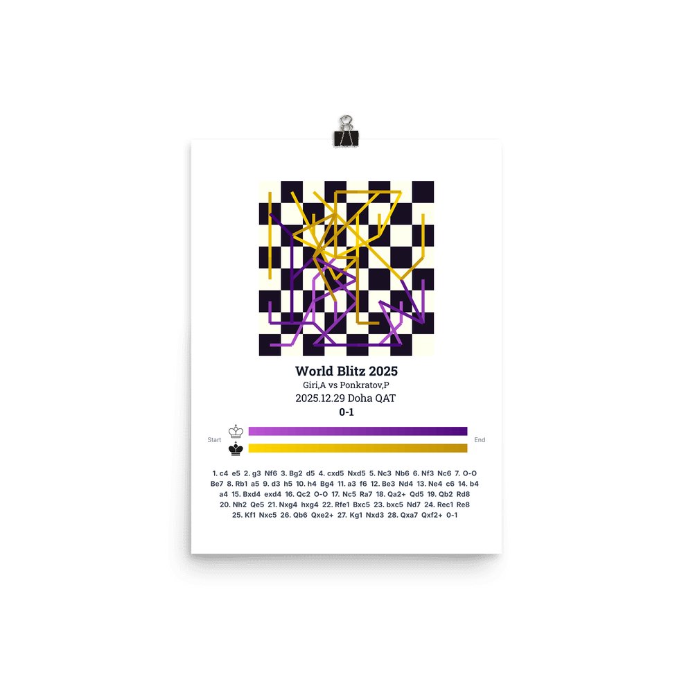 Museum-quality poster on thick, durable matte paper. A sharp, clean look for any chess visualisation.