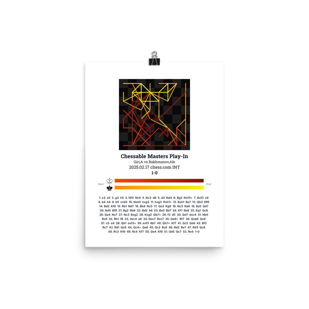 Museum-quality poster on thick, durable matte paper. A sharp, clean look for any chess visualisation.