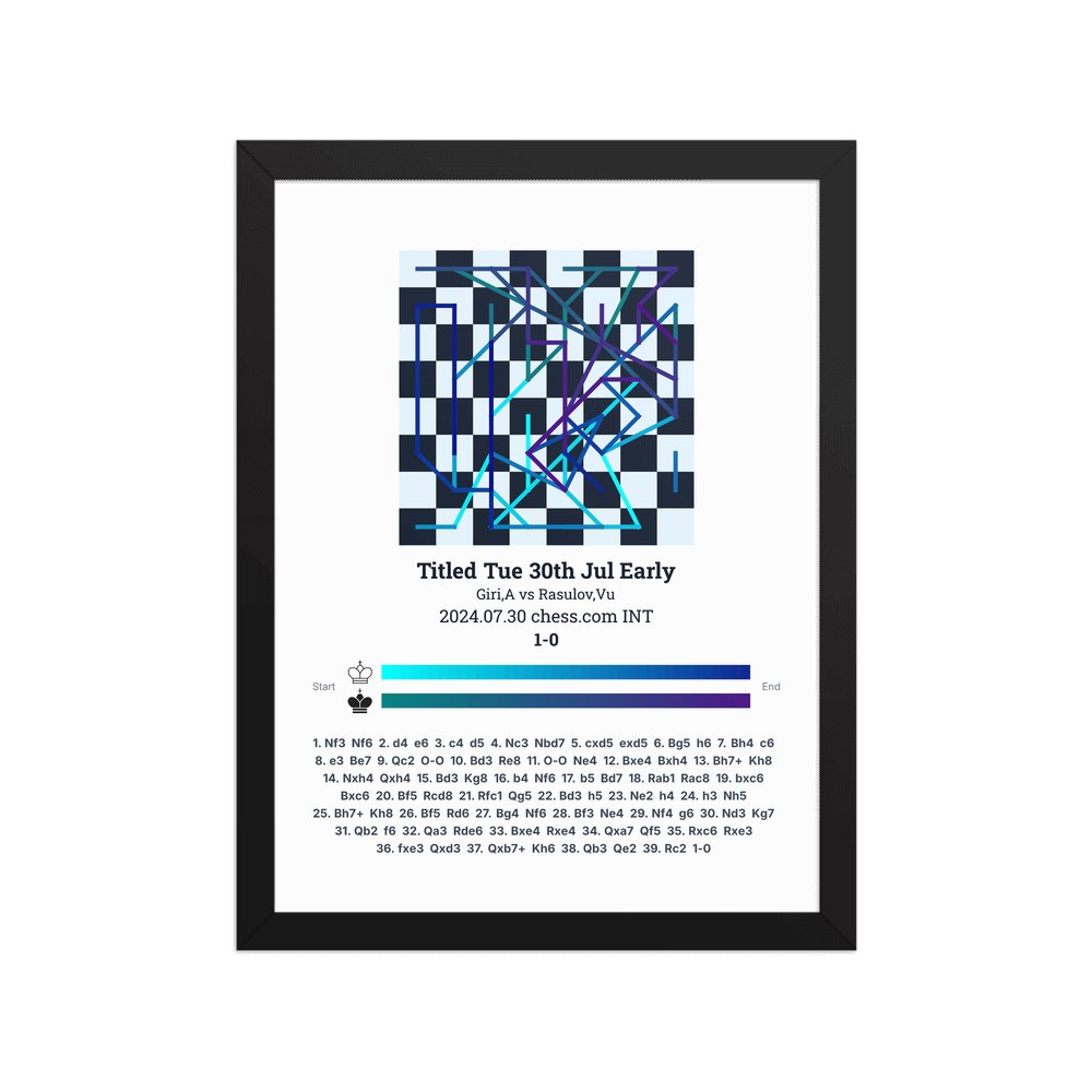Museum-quality poster on thick, durable matte paper. A sharp, clean look for any chess visualisation.