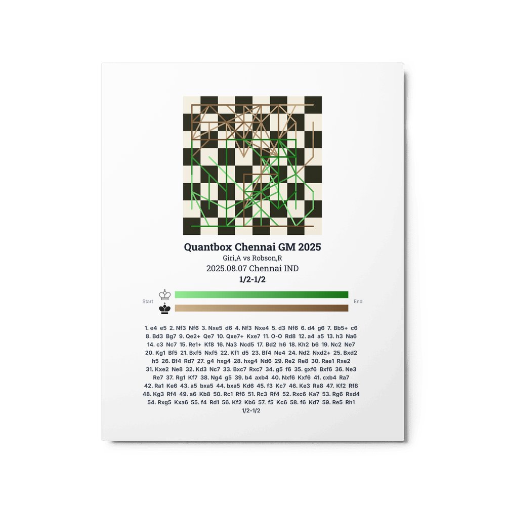 Museum-quality poster on thick, durable matte paper. A sharp, clean look for any chess visualisation.