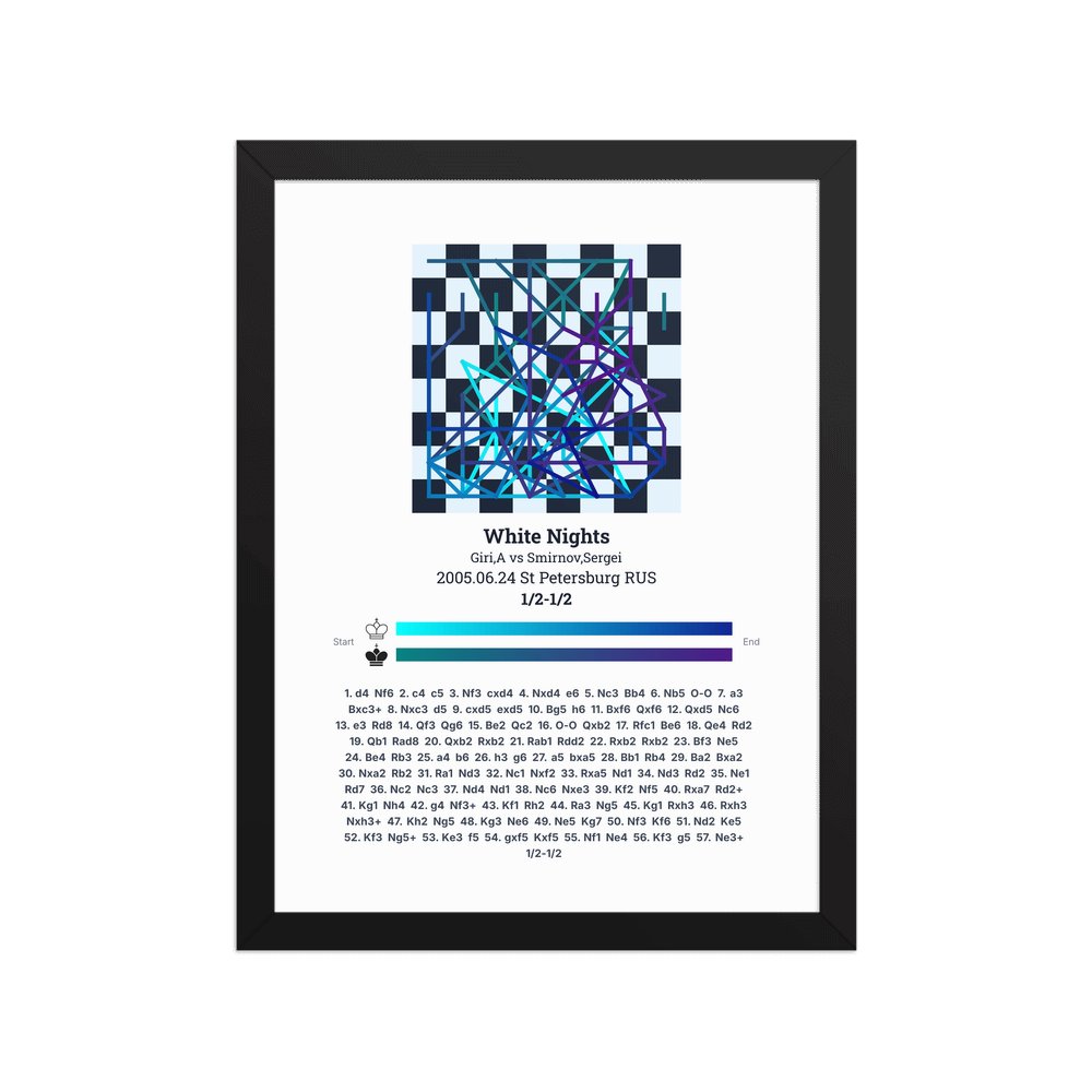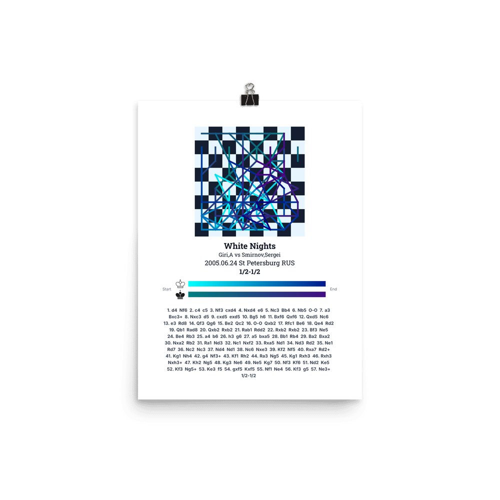 Museum-quality poster on thick, durable matte paper. A sharp, clean look for any chess visualisation.
