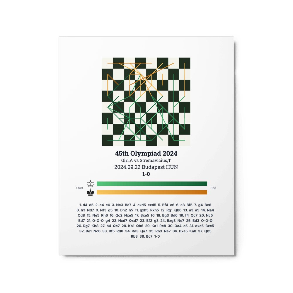 Museum-quality poster on thick, durable matte paper. A sharp, clean look for any chess visualisation.