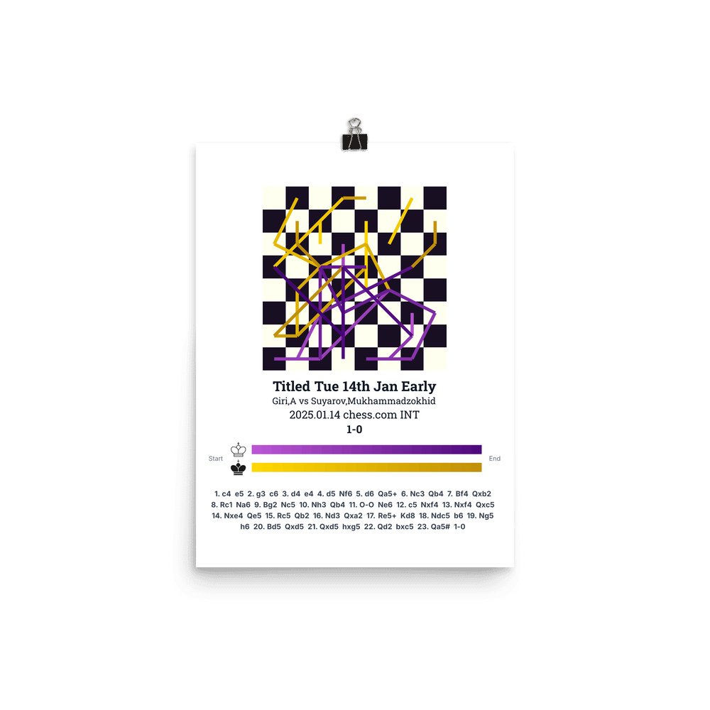 Museum-quality poster on thick, durable matte paper. A sharp, clean look for any chess visualisation.