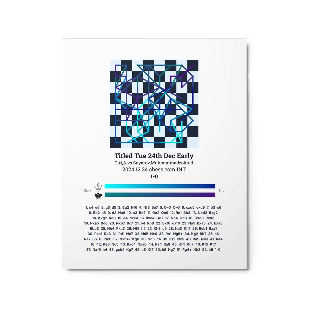Museum-quality poster on thick, durable matte paper. A sharp, clean look for any chess visualisation.