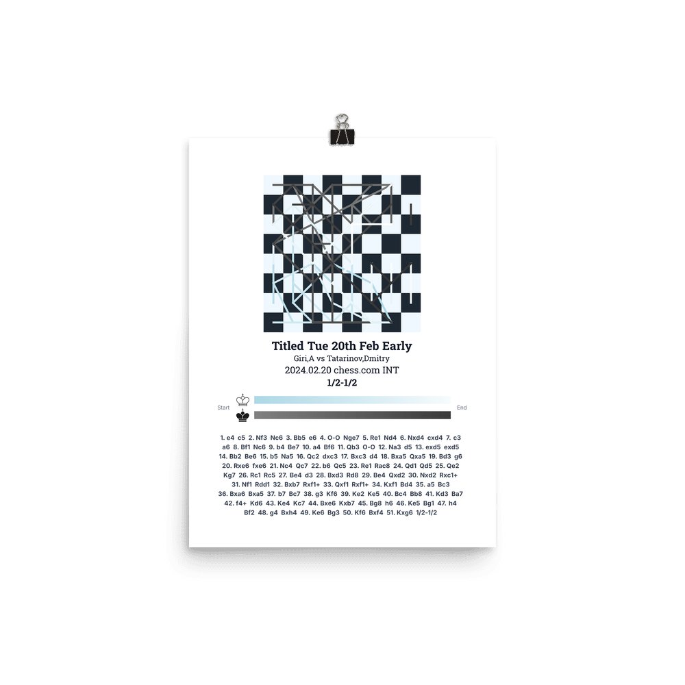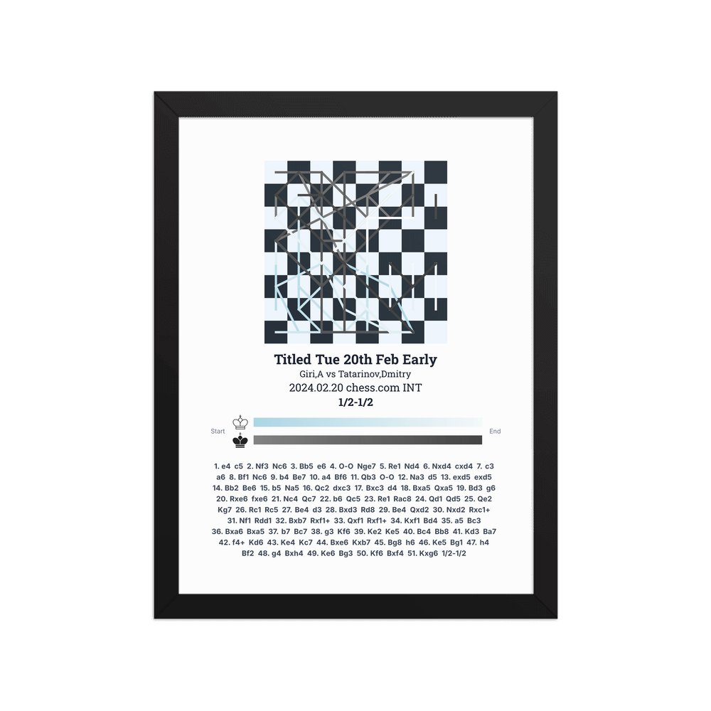 Museum-quality poster on thick, durable matte paper. A sharp, clean look for any chess visualisation.