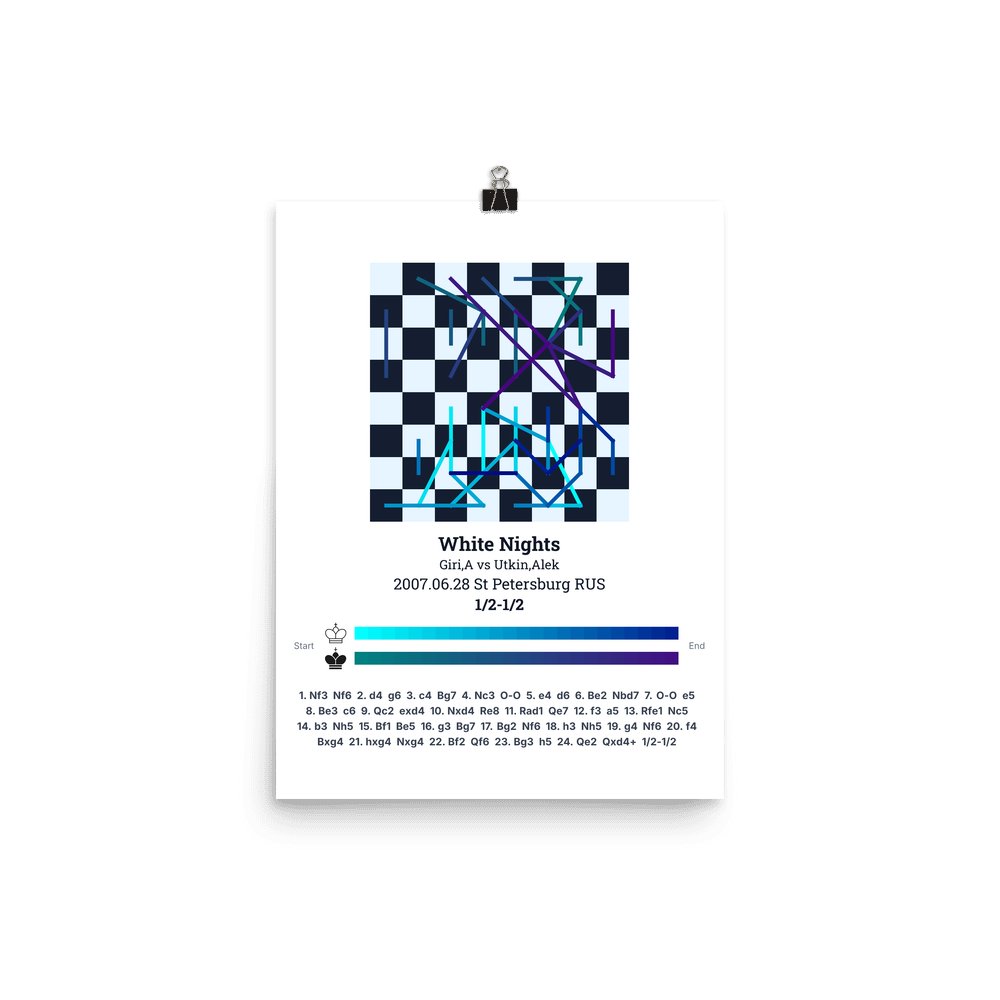 Museum-quality poster on thick, durable matte paper. A sharp, clean look for any chess visualisation.