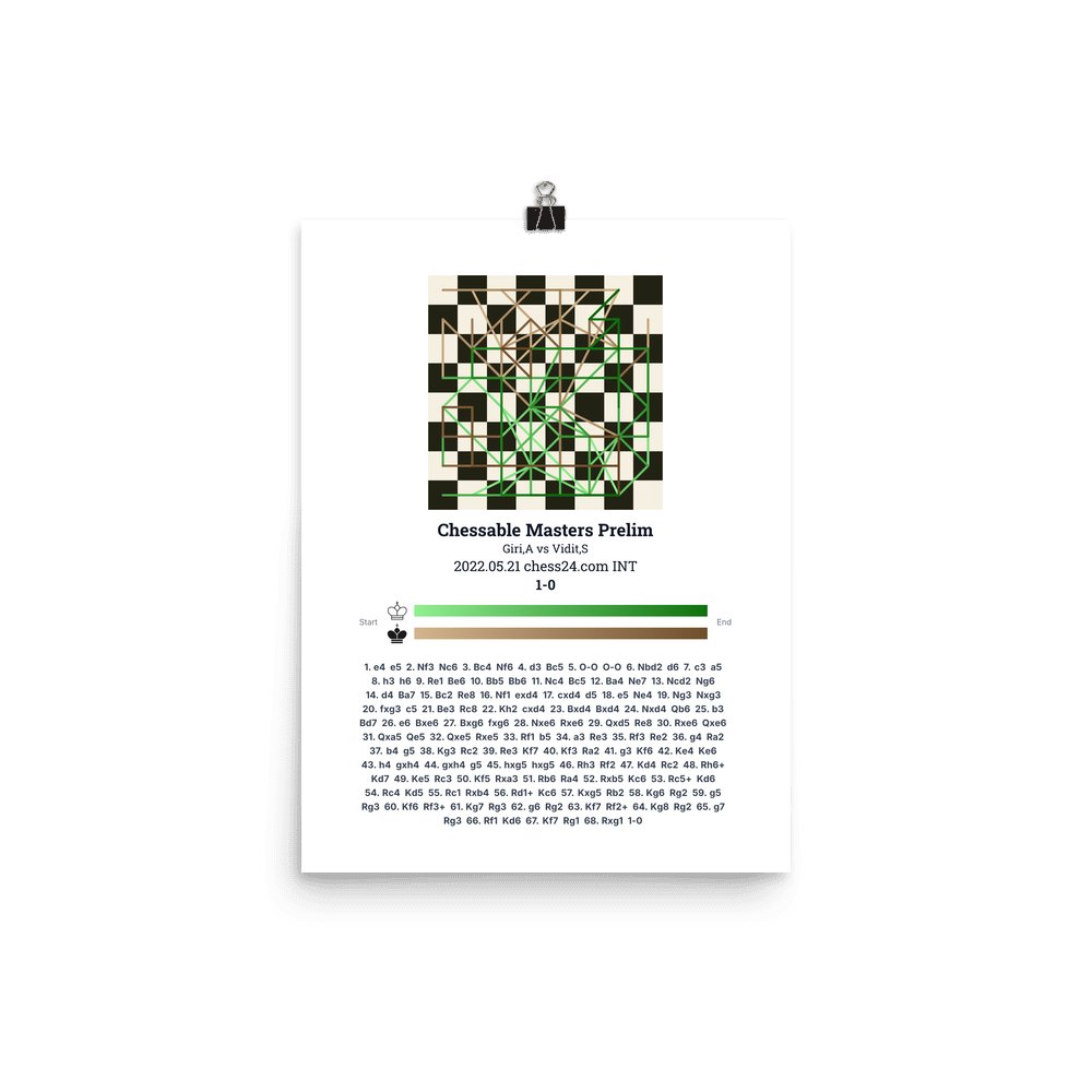 Museum-quality poster on thick, durable matte paper. A sharp, clean look for any chess visualisation.