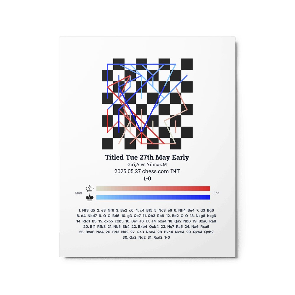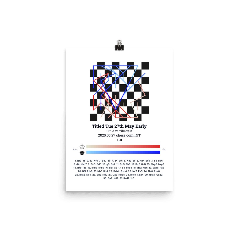 Museum-quality poster on thick, durable matte paper. A sharp, clean look for any chess visualisation.
