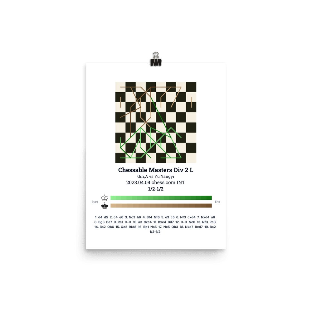 Museum-quality poster on thick, durable matte paper. A sharp, clean look for any chess visualisation.