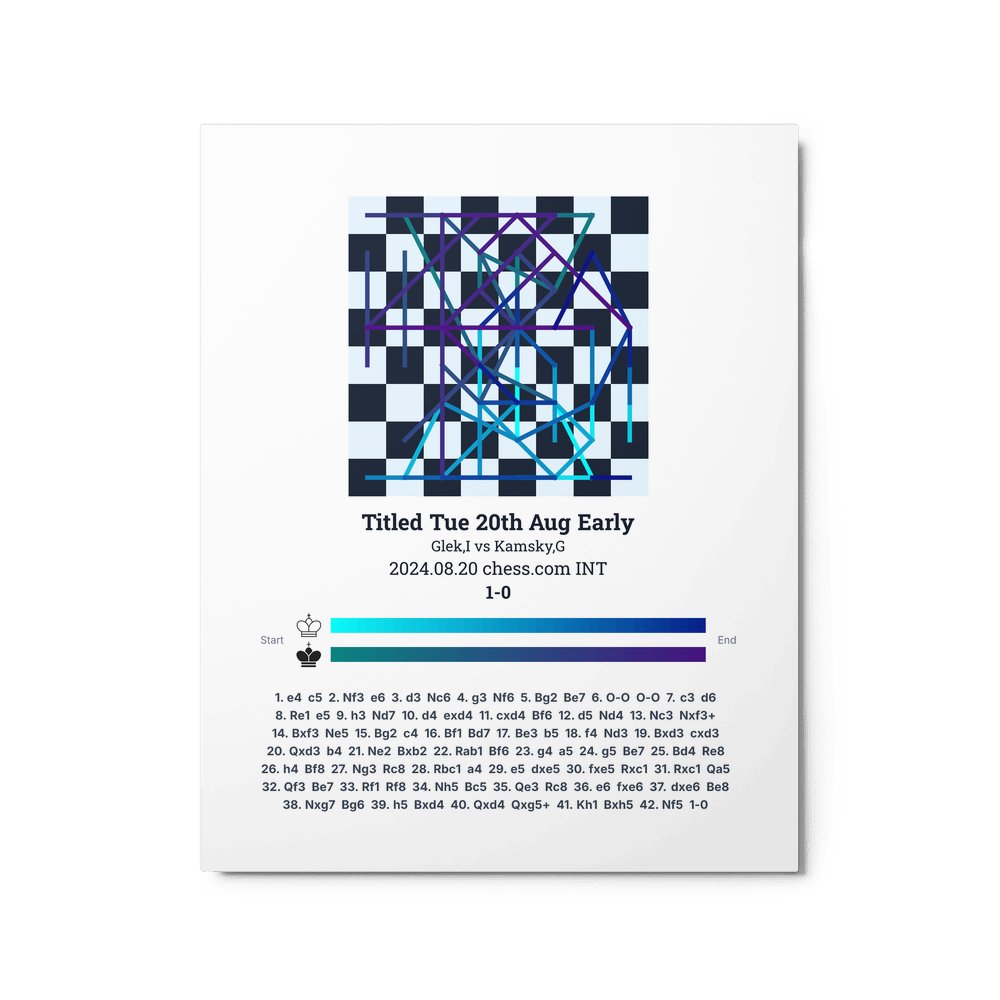 Museum-quality poster on thick, durable matte paper. A sharp, clean look for any chess visualisation.