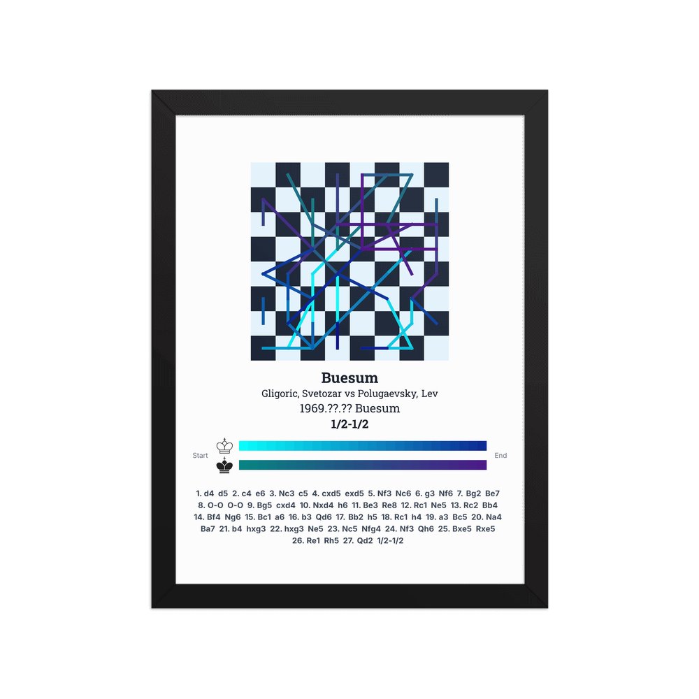Museum-quality poster on thick, durable matte paper. A sharp, clean look for any chess visualisation.
