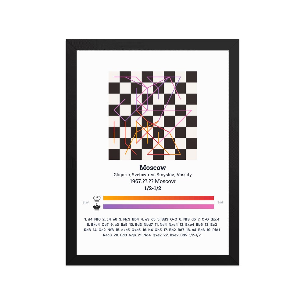 Museum-quality poster on thick, durable matte paper. A sharp, clean look for any chess visualisation.