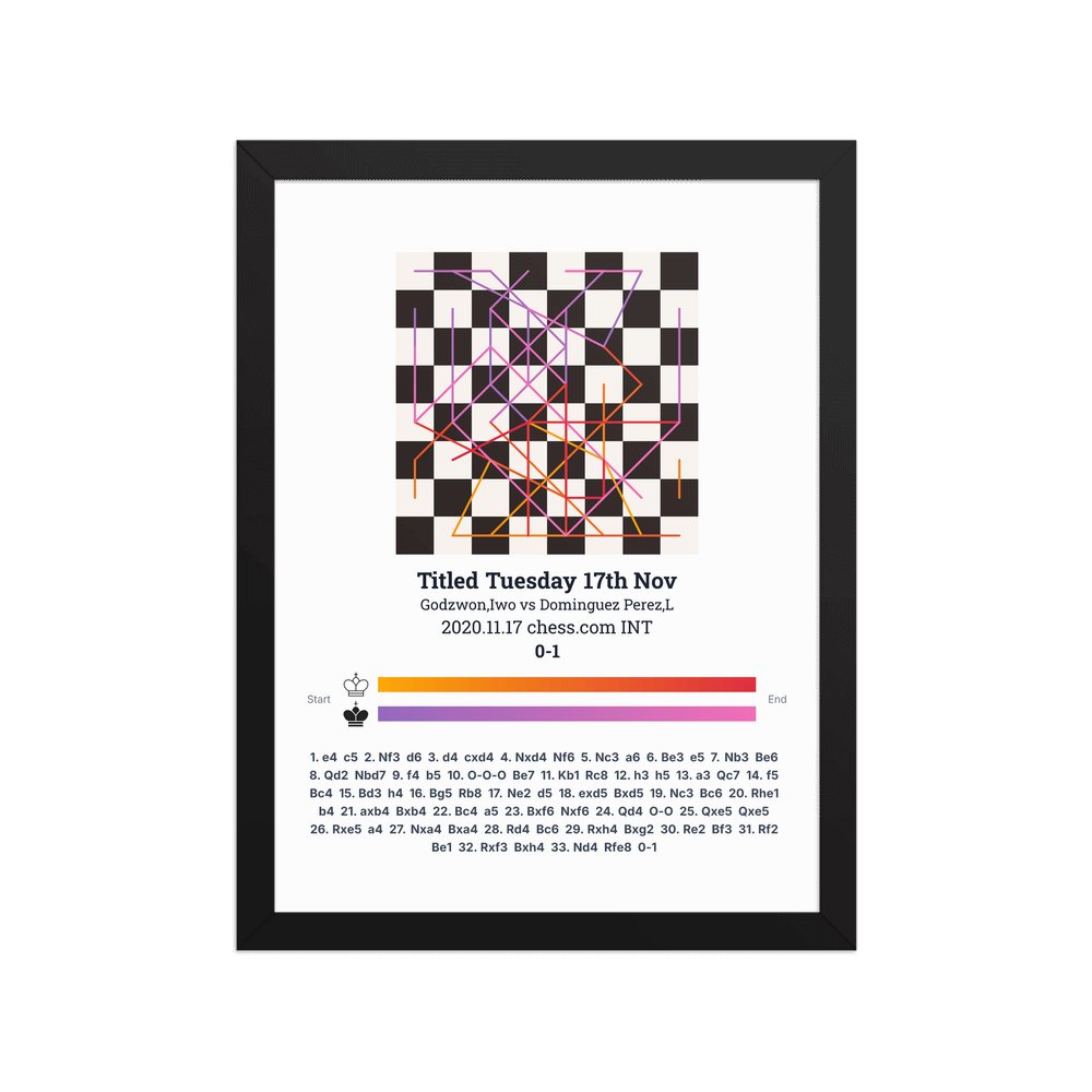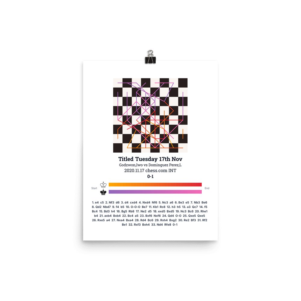Museum-quality poster on thick, durable matte paper. A sharp, clean look for any chess visualisation.