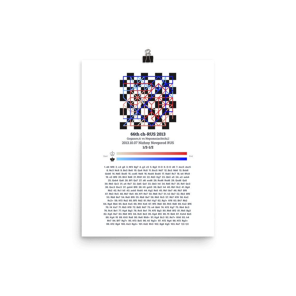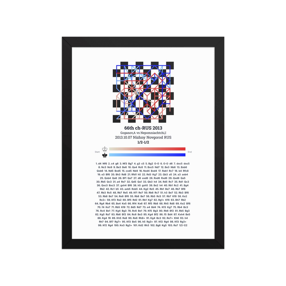Museum-quality poster on thick, durable matte paper. A sharp, clean look for any chess visualisation.