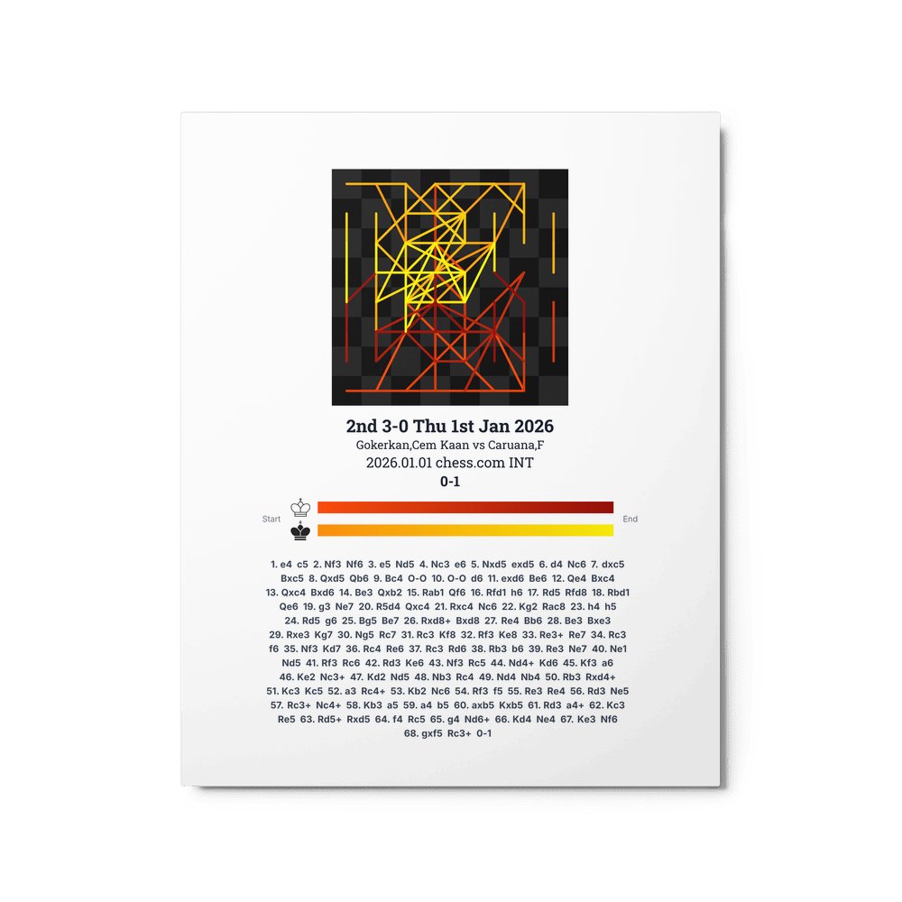Museum-quality poster on thick, durable matte paper. A sharp, clean look for any chess visualisation.