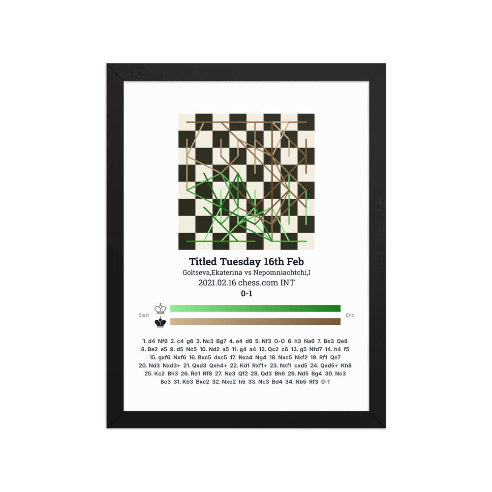 Museum-quality poster on thick, durable matte paper. A sharp, clean look for any chess visualisation.