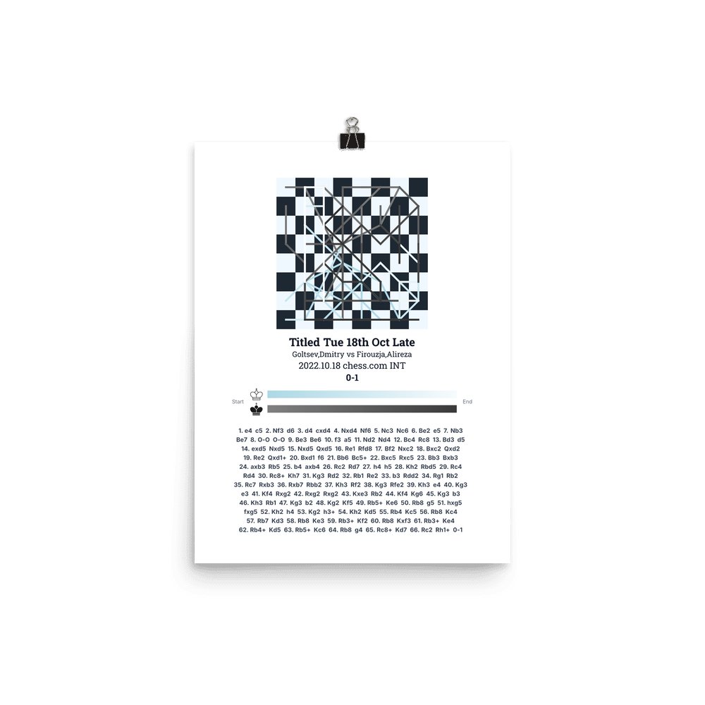 Museum-quality poster on thick, durable matte paper. A sharp, clean look for any chess visualisation.