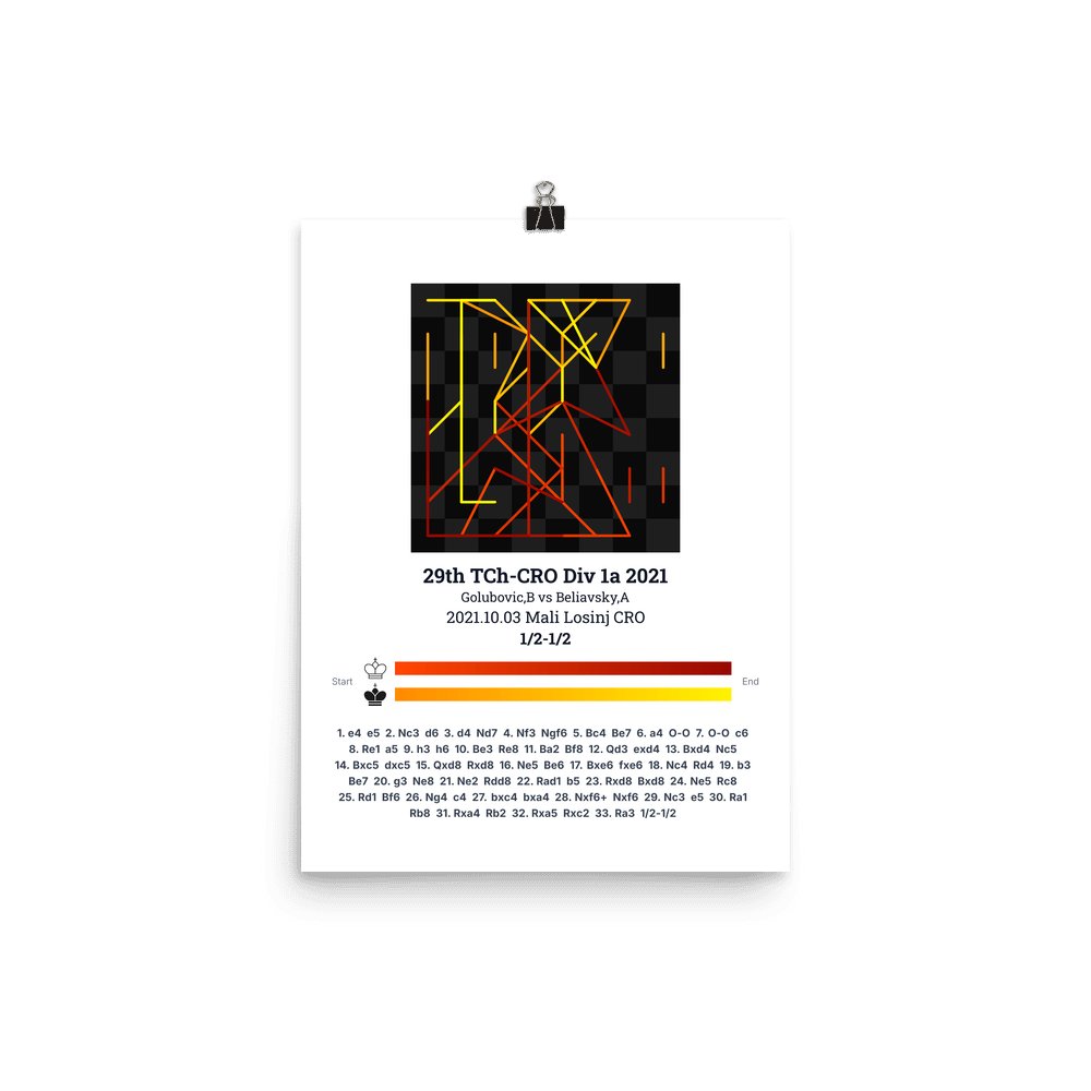 Museum-quality poster on thick, durable matte paper. A sharp, clean look for any chess visualisation.