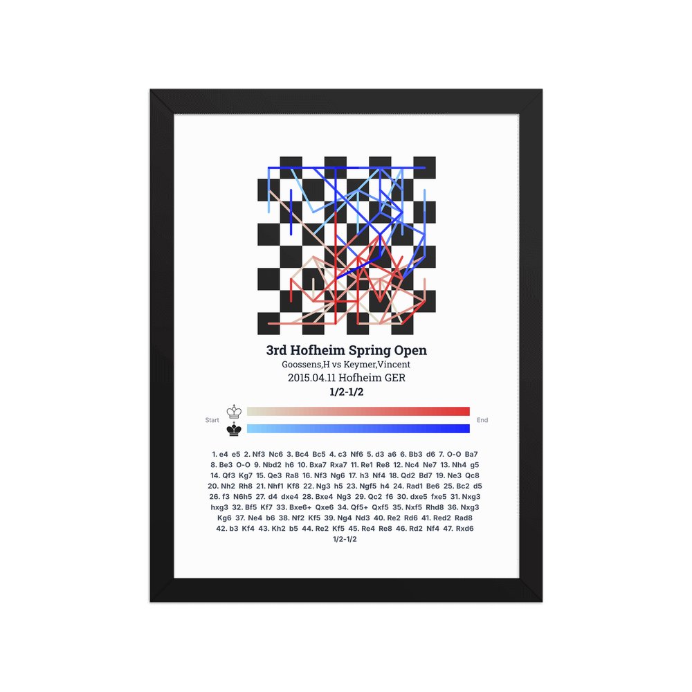 Museum-quality poster on thick, durable matte paper. A sharp, clean look for any chess visualisation.