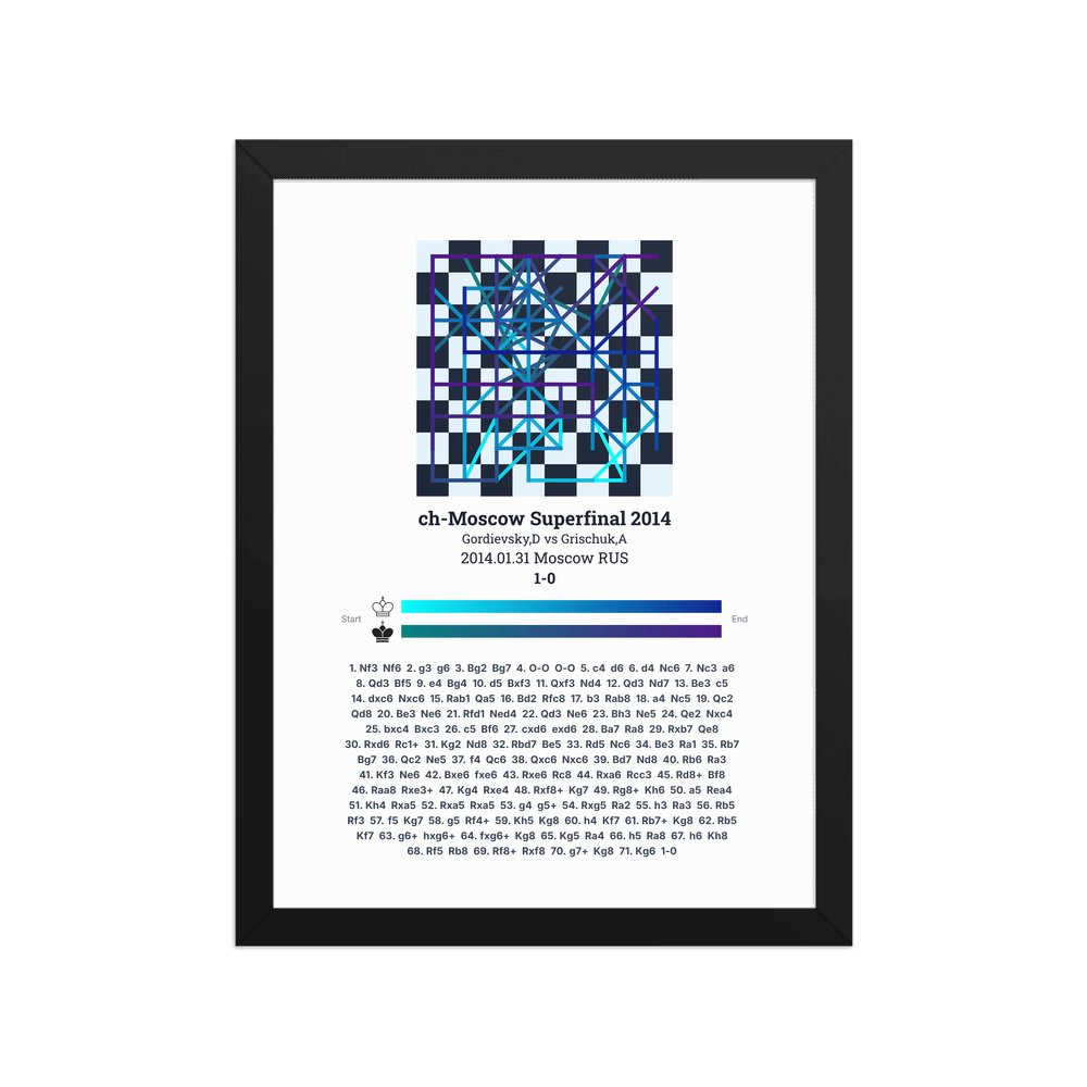 Museum-quality poster on thick, durable matte paper. A sharp, clean look for any chess visualisation.