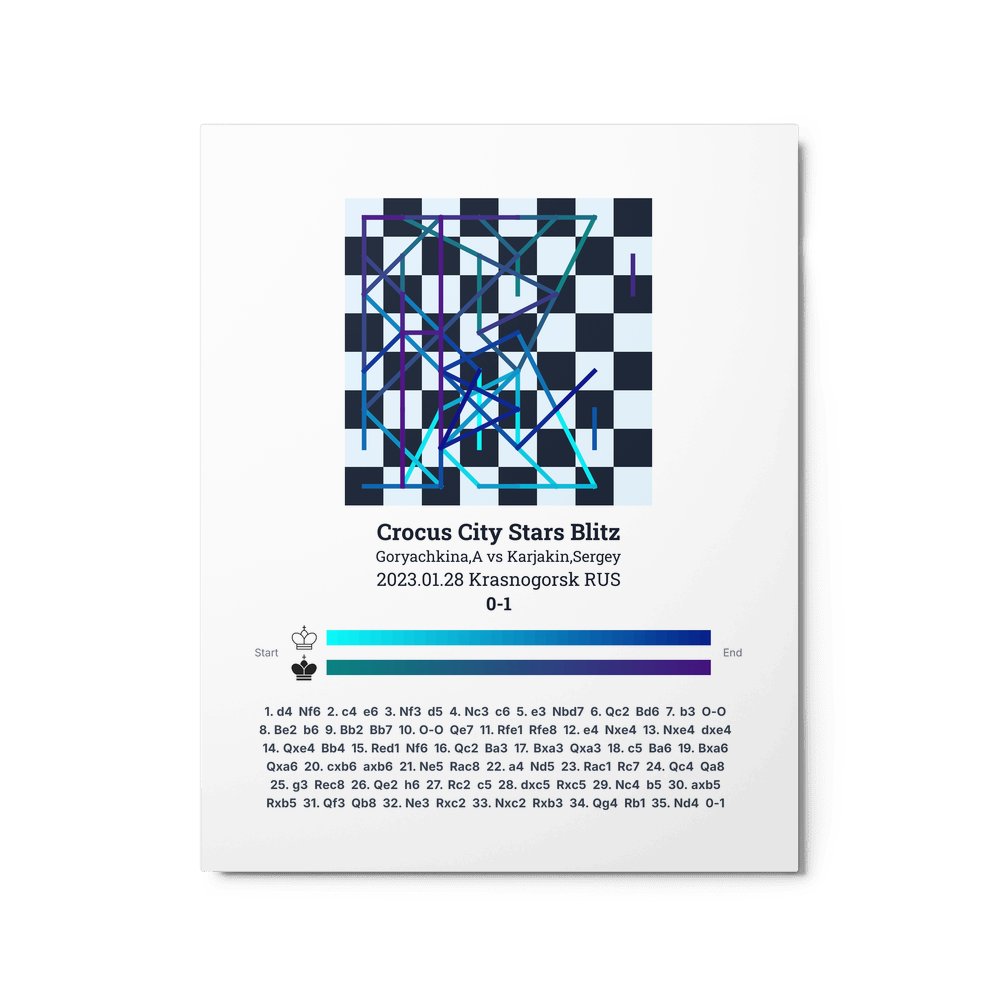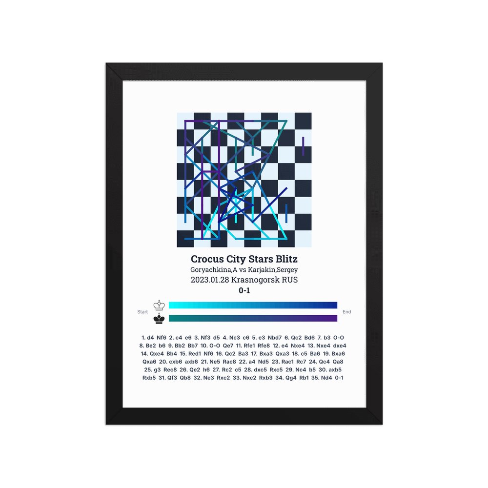 Museum-quality poster on thick, durable matte paper. A sharp, clean look for any chess visualisation.