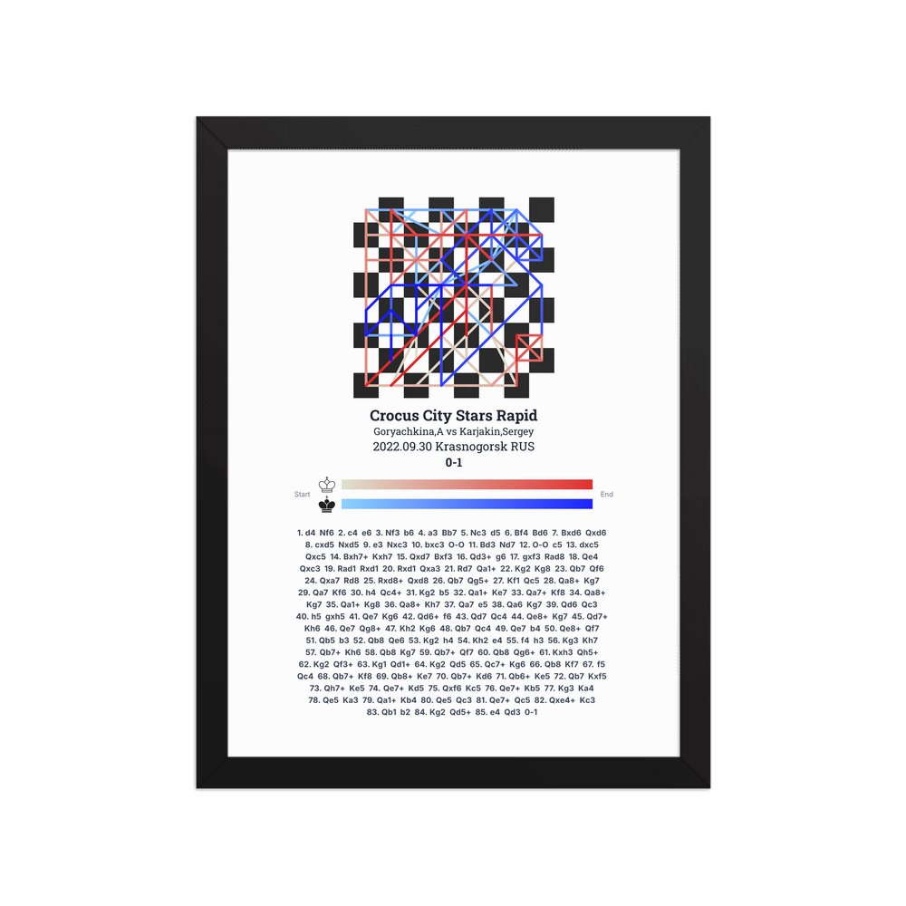 Museum-quality poster on thick, durable matte paper. A sharp, clean look for any chess visualisation.
