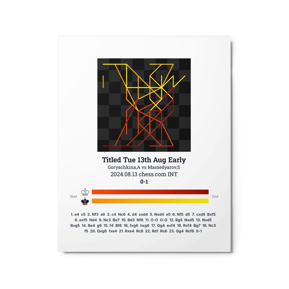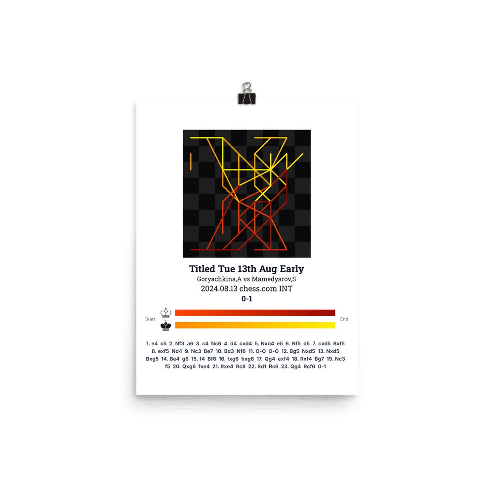 Museum-quality poster on thick, durable matte paper. A sharp, clean look for any chess visualisation.